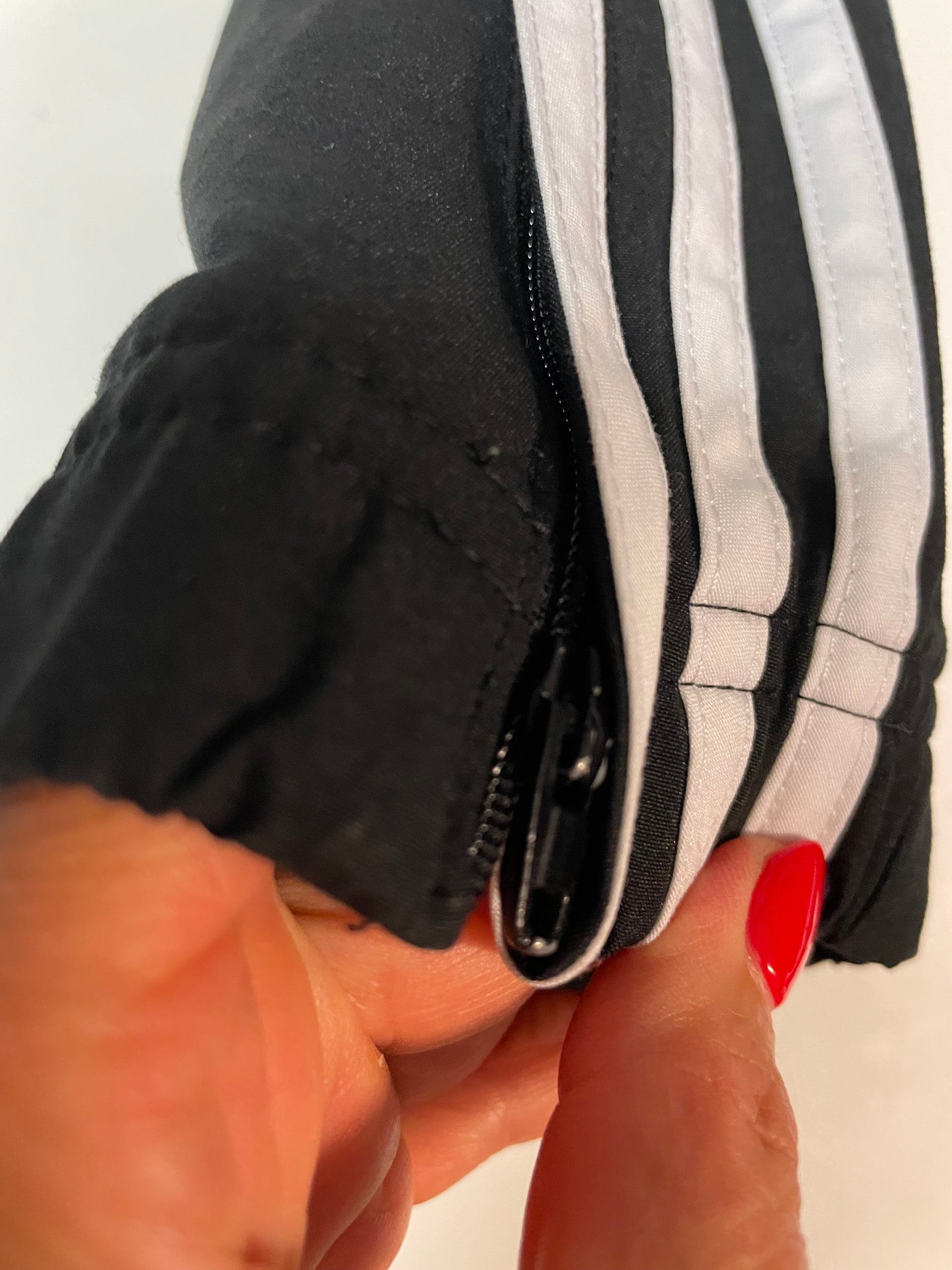 Die Breite der Trackpants kann mit dem Bändel in der Hose individuell verstellt werden.