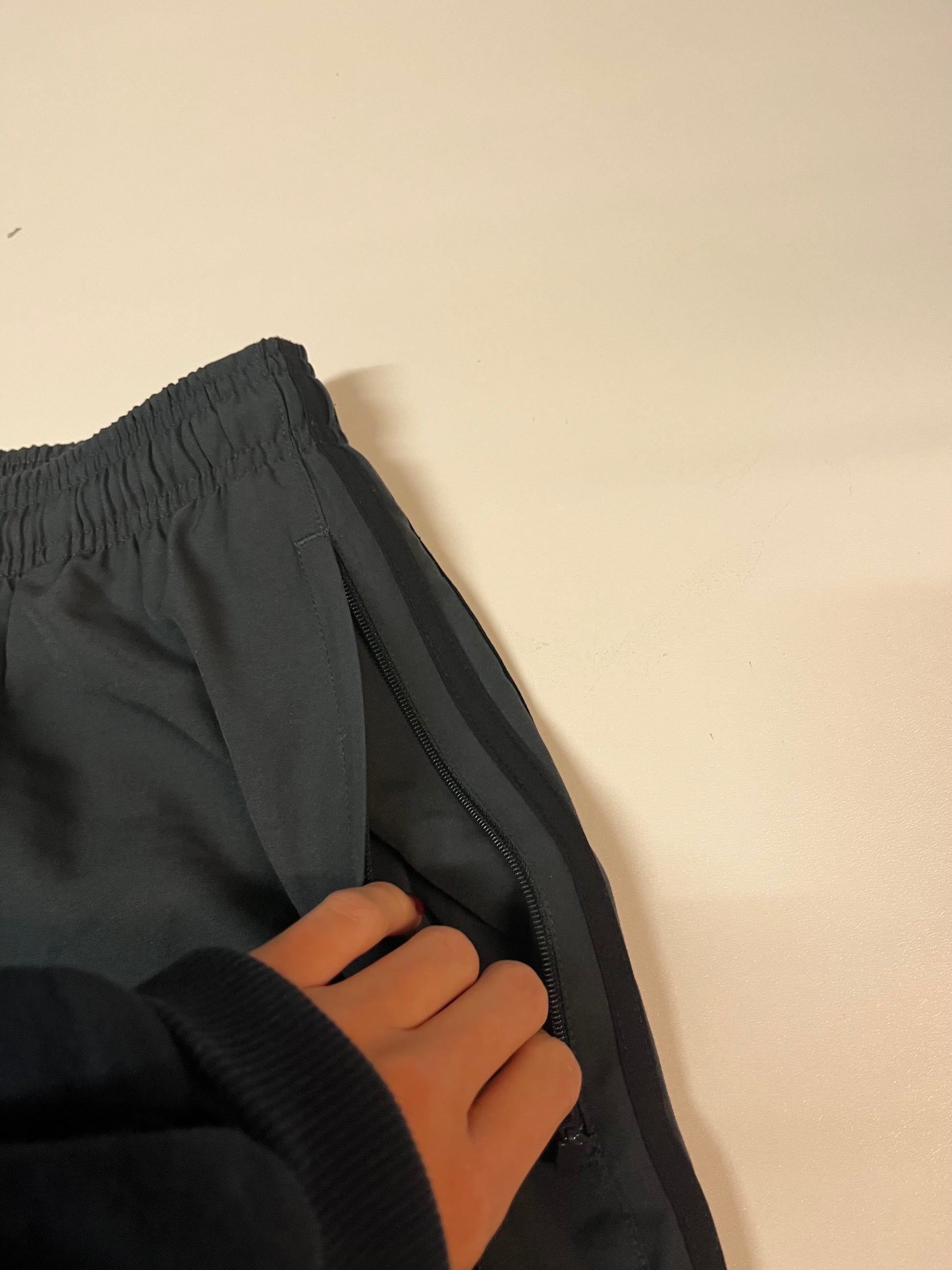 Die Breite der Trackpants kann mit dem Bändel in der Hose individuell verstellt werden.