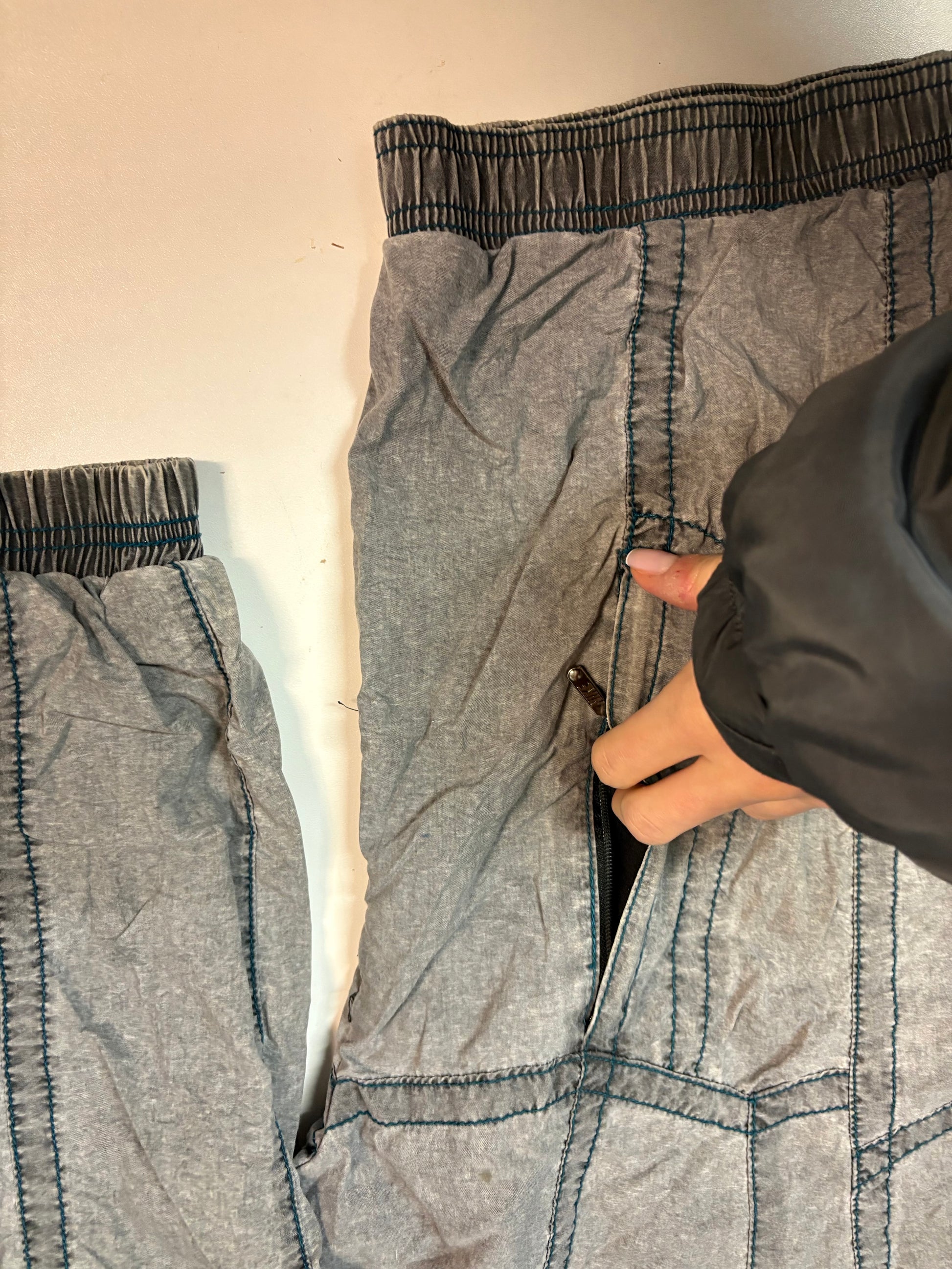 Die Breite der Trackpants kann mit dem Bändel in der Hose individuell verstellt werden.